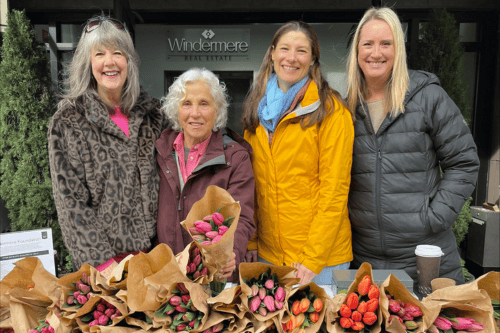 The agents at the Windermere office in Lake Oswego, OR, hosted their 27th annual Sally Knauss Tulip Sale in March. Named for the Realty Trust agent who started it, who has since passed away, the tulip sale culminated in an order for 8,000 tulips from Wooden Shoe Tulip Farm, which were used to create 800 bouquets.